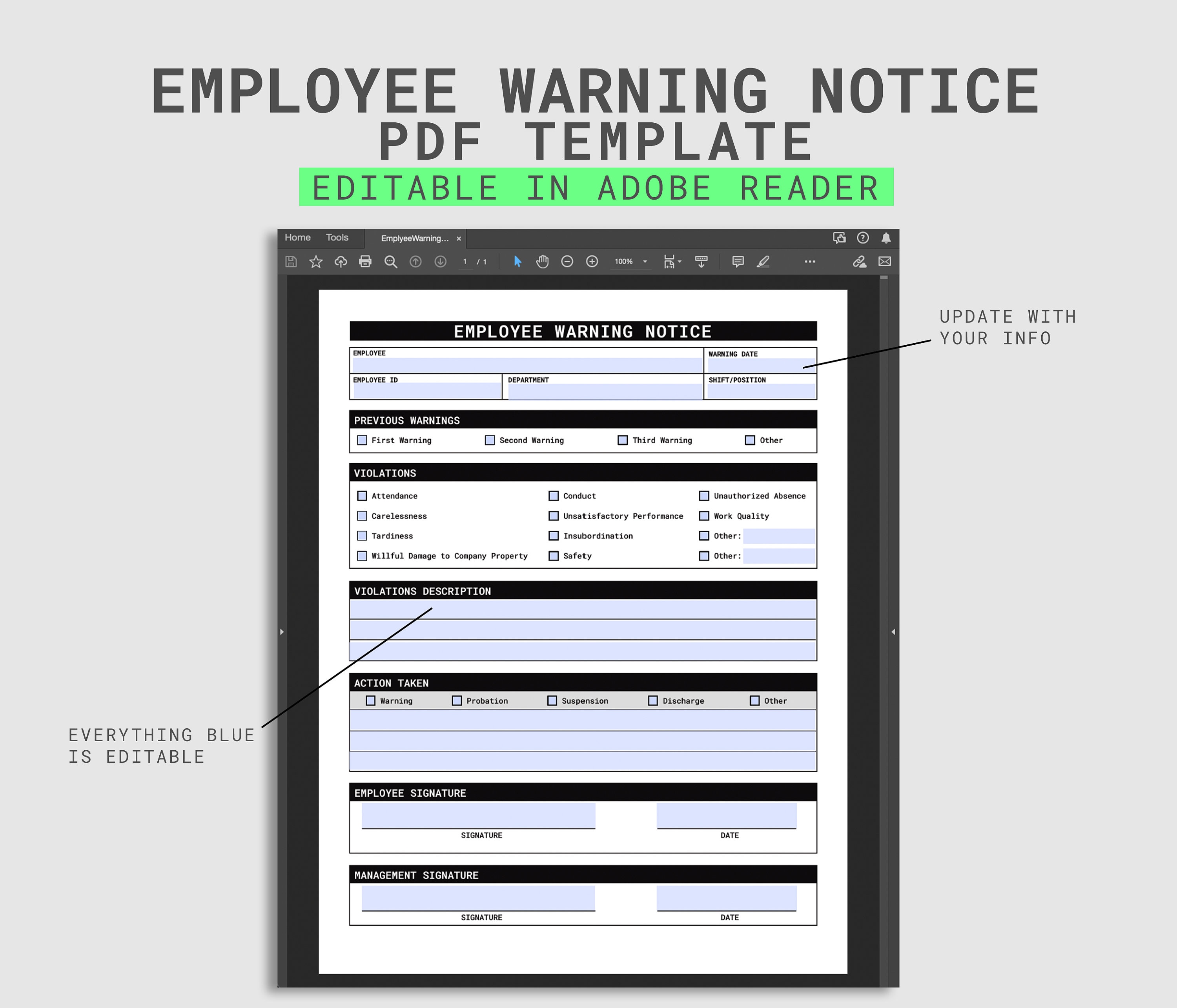 Employee Warning Notice Pdf Employee Write Up Employee Etsy